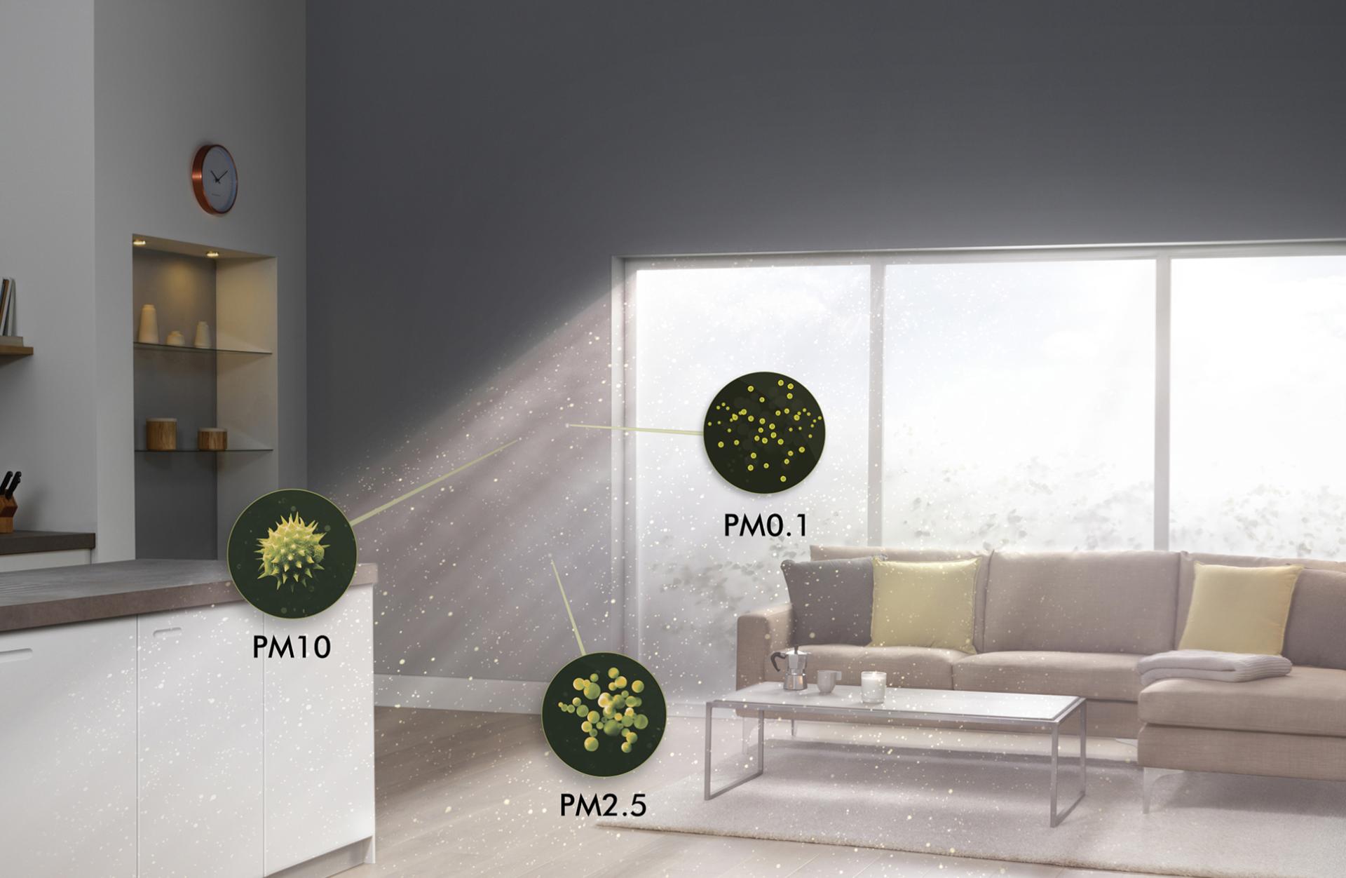 1Tested for filtration efficiency (EN1822) at 0.1 microns and "excellent’’ whole room coverage (TM-003711 and DTM801) in a 27m² room.